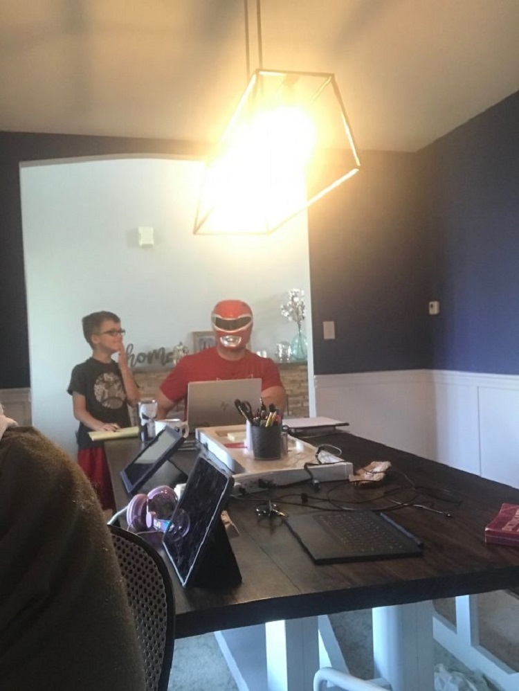 What happens is that occasionally, while Cara is on a work-related Zoom call, her husband would photobomb the call in the background while wearing a silly costume.