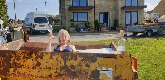 A practical man has converted a dump truck into a hot tub for his partner after she complained to him about lacking a bath to relax in.