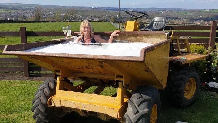 To satisfy his partner’s needs for a relaxing bath, Dave transformed the bucket of his dump truck into a one-of-a-kind hot tub – and apparently, it’s a blessing.