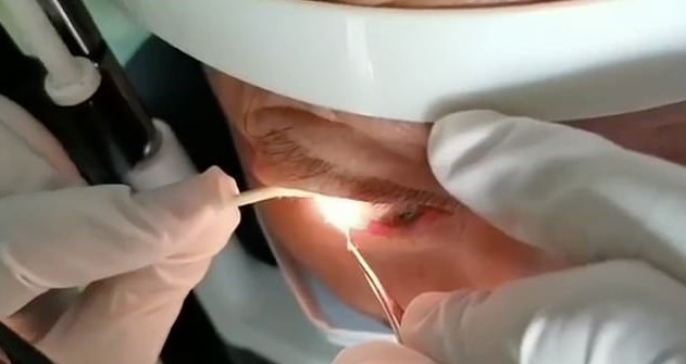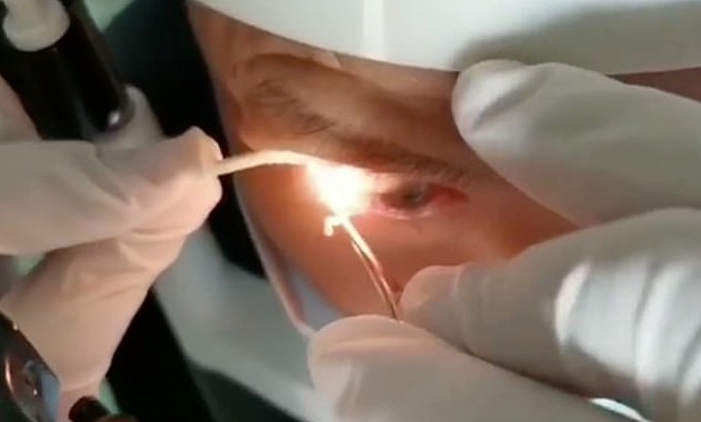 An elderly man has 20 wriggling worms pulled out from his eye.