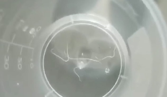 In the video obtained by Suzhou Daily News, a doctor can be seen removing a white worm from Mr. Wan’s eye before dropping it into a small container.