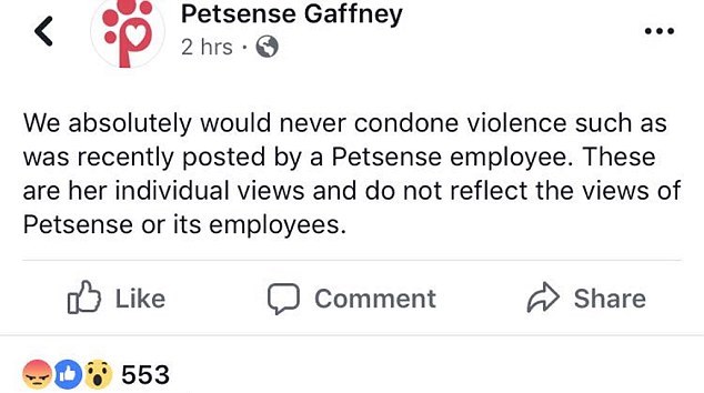 Eventually, Petsense management responded and explained that they in no way “condone violence such as was recently posted by a Petsense employee.” They also reassured their customers that such harsh words did not represent the company’s beliefs.