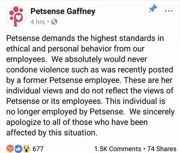 Soon enough, Petsense also announced that Carly was no longer working for them and that the company apologizes to everyone affected by the woman’s words.