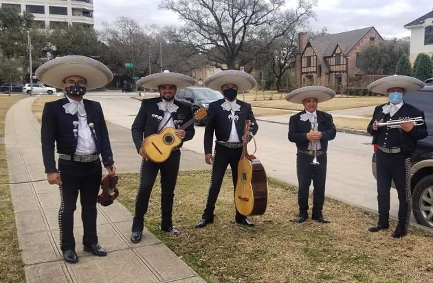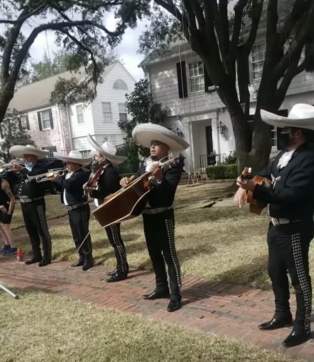 The musicians – wearing charro outfits and sombreros – filled the cool air with the traditional music as they played cheerfully outside the Senator’s home.