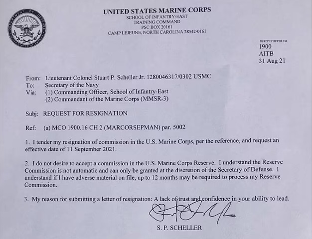 The Marine, however, refused to budge and went on to speak his mind before officially submitting a resignation letter on August 31.