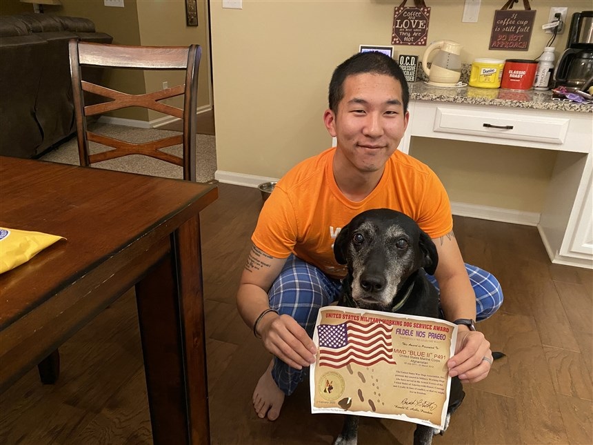 Throughout the years of her service, Blue has got close to her handler, Byung Kang, who vowed to adopt her once her job would be finished.