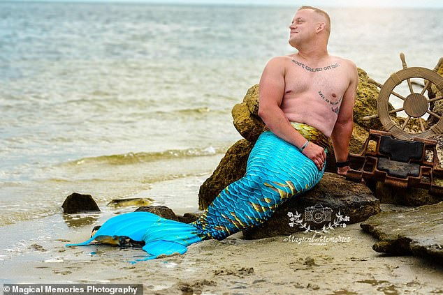 ‘My daughter thought it was cool and funny so now she will always have a pic of me as a merman,’ he said.