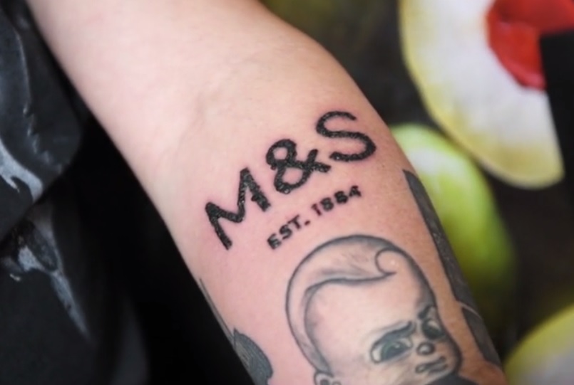 To show his affection for the high-street clothing line, Mr. Coates got ‘M&S EST.1884’ inked onto his arm to complement his other designs including jigsaws and skulls.