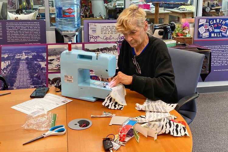 These masks were being made from the leftover fabric of the AIDS Memorial Quilt and it couldn’t have been more symbolic. These masks are benefiting the workers at facilities run by Bay Area Community Services, servicing homeless people and those suffering from addiction.