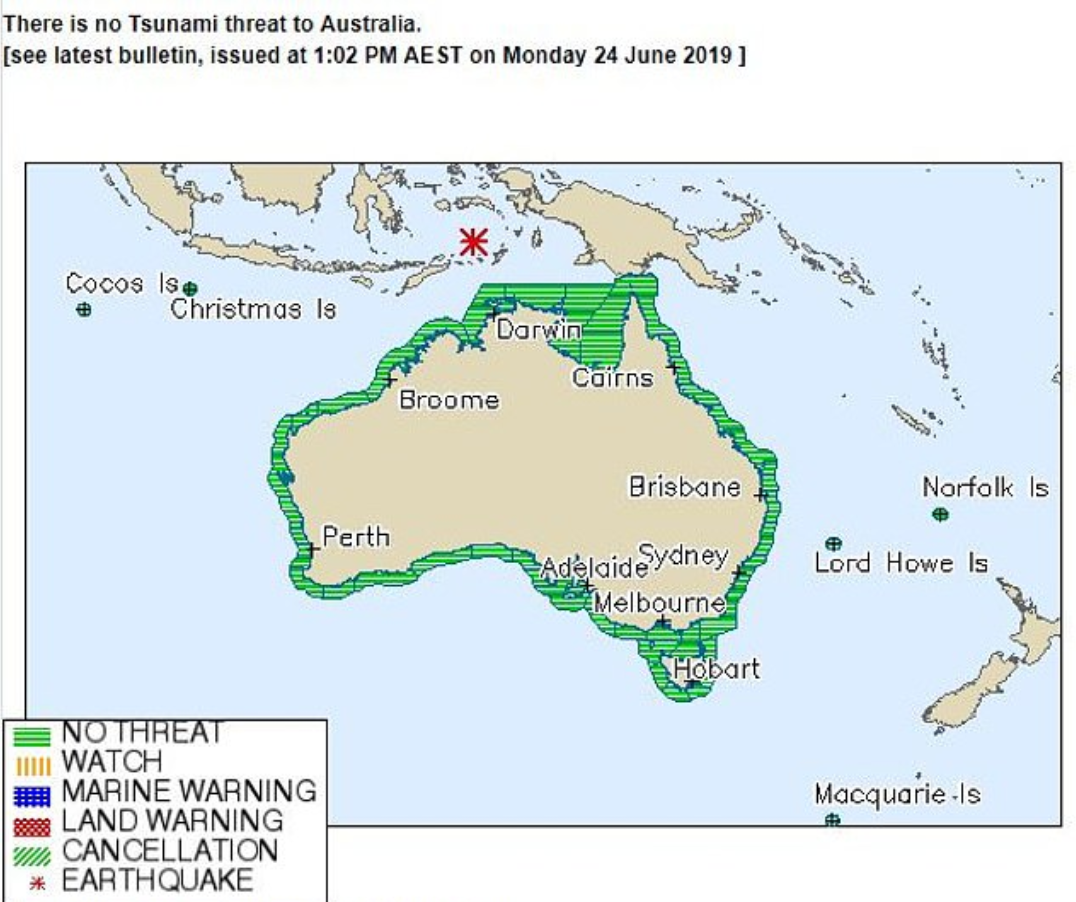 Bureau of Meteorology says that there are no seeming chances of a tsunami so the locals can relax and be safe in their homes.