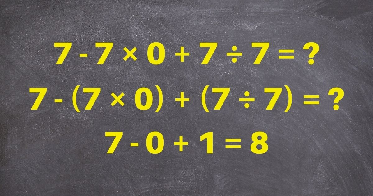 After you’re left with just subtraction and addition, simply solve the problem by subtracting 0 from 7 and adding 1 (7 – 0 + 1 = 8).
