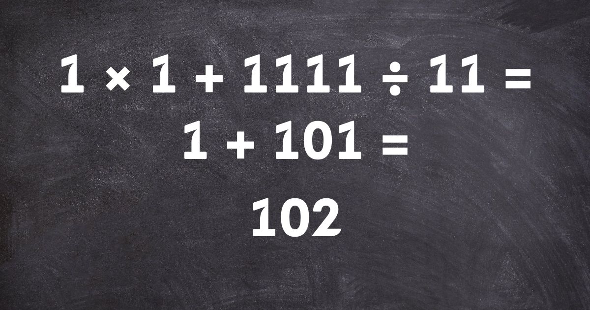 Since multiplication and division have the same priority, you simply start solving the equation from left to right, whereas 1 x 1 = 1 and 1111 : 11 = 101.