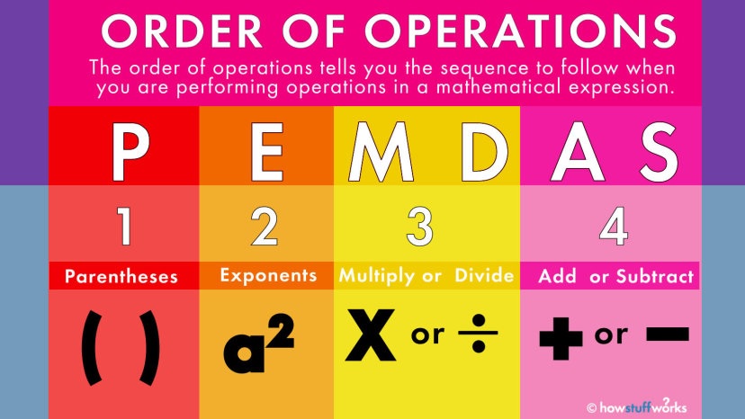 Additionally, PEMDAS is the same rule as PEDMAS and BOMDAS is the same rule as BODMAS. Why? In math, multiplication and division have the SAME priority.