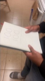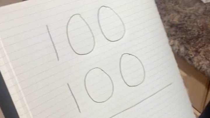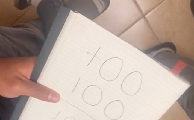 A piece of paper shows two ‘100 numbers’ and a line underneath.