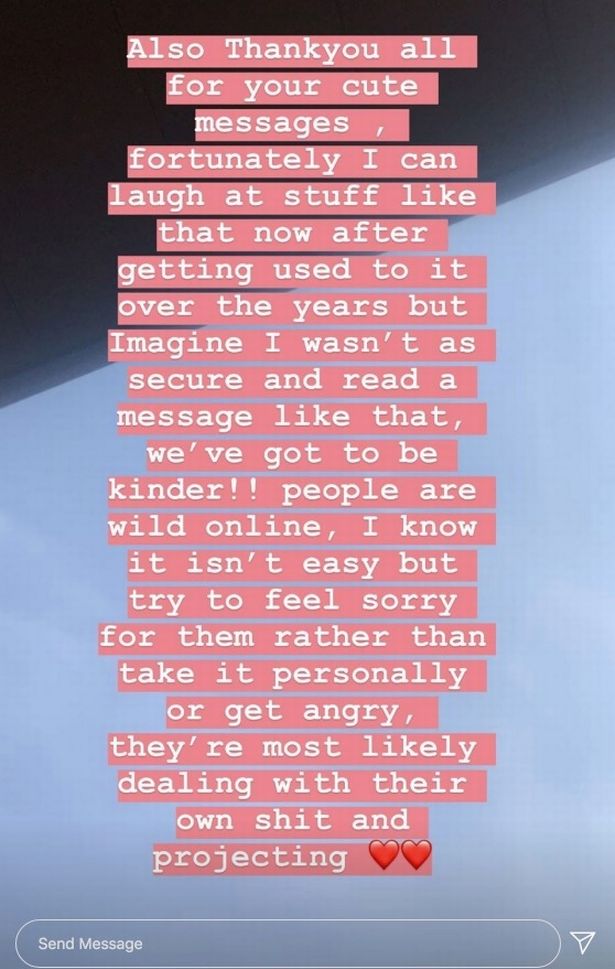 She said: “Fortunately, I can laugh at stuff like that now after getting used to it over the years, but imagine I wasn’t as secure and read a comment like that.”