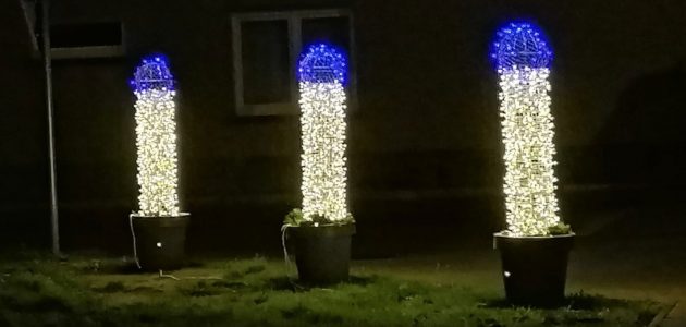 The holiday decorations were designed by the technical department of the council as part of a plan for the place that included illuminated pyramids.