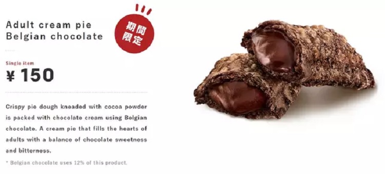 The site adds: “A cream pie that fills the hearts of adults with a balance of chocolate sweetness and bitterness.”