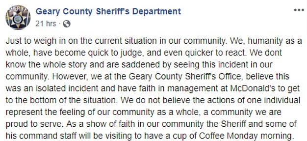 “One of my Officers decided to grab a coffee at the McDonalds located at 1127 South Washington in Junction City this morning on his way to work,” he wrote in his Facebook post.