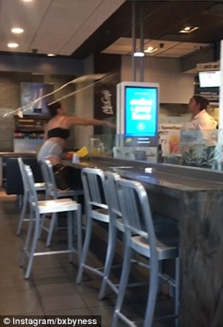 The argument is difficult to hear since Dayag was filming from several feet away. However, snatches of “since you can’t afford one” and “that’s why your a** is behind the f***ing counter” could be heard. The customer also kept shouting “fight me” as she threw some French fries at the counter.