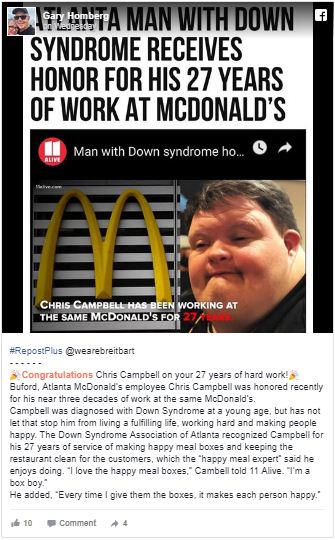 However, there’s something that makes him set apart. Campbell, the age-old employee has Down syndrome.