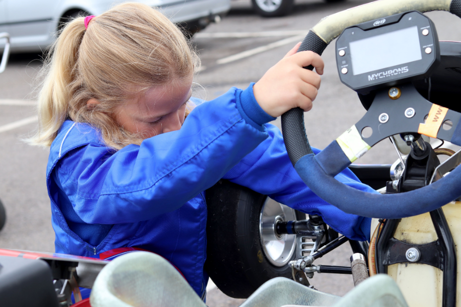 Amelie had to pass a driving test, similar to a usual driver’s license test comprising of theory and practical, to get her race license for go karting.