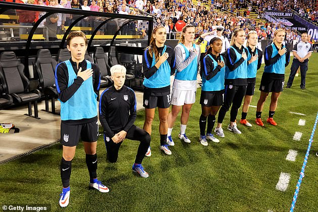 When the US Soccer Federation adopted a new policy which made players stand during the national anthem, Megan stopped kneeling.