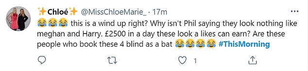 Some of the lookalikes said that they now had ‘less gigs’ because of the tell-all Oprah interview but This Morning viewers said that their lack of work was because they “look nothing” like the Sussexes.