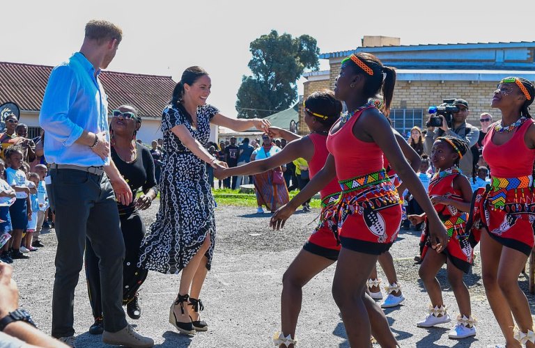 Meghan and Harry visited Nyanga just outside of Cape Town. Their visit to the troubled township, where 1 in 206 people are killed every year, has been arranged amid a huge security presence.