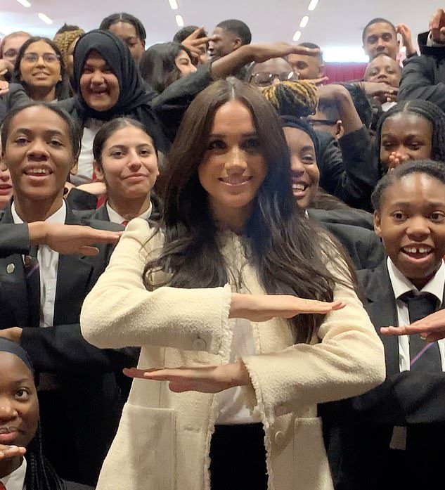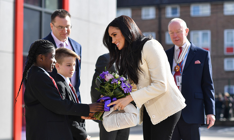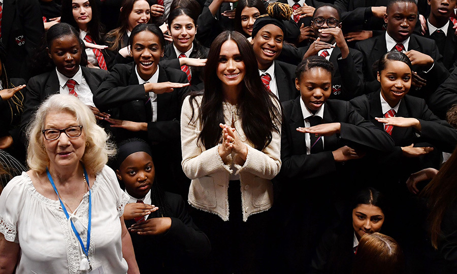 On Friday, the Duchess of Sussex visited Robert Clack School in the town of Dagenham in east London for a special International Women’s Day assembly.