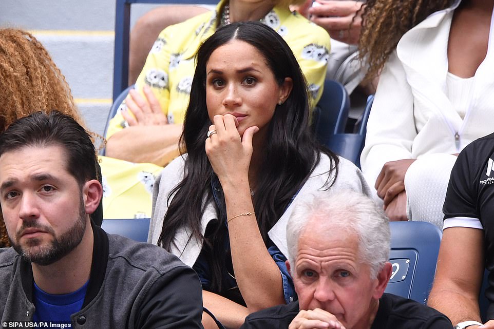 A source told Page Six: ‘Serena asked her coach about Meghan coming when she won last night and everyone is worried, as tennis players are very superstitious, and Serena lost when Meghan came to watch her at Wimbledon.’