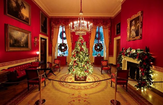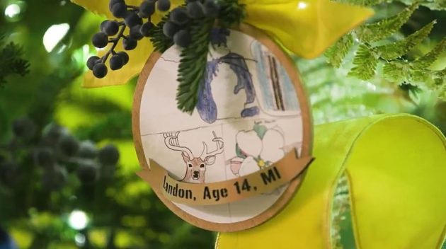 The ‘America the Beautiful’ theme featured ornaments made by children and highlights a room dedicated to frontliners as the country deals with rising Covid-19 cases.