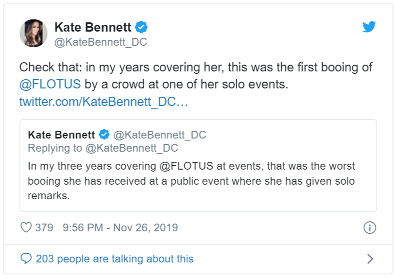 Melania’s walk from her seat to the stage was welcomed by boos and hooting which converted into constant noise.