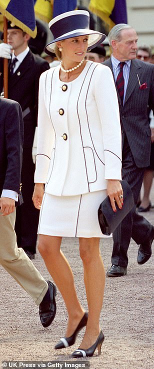 Princess Diana wore several white and navy outfits throughout the 1980s and early 1990s.