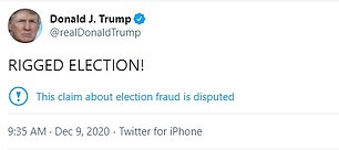 Mr. Trump continues his fight to stay in the White House. On Wednesday, he took to Twitter and wrote: “RIGGED ELECTION.