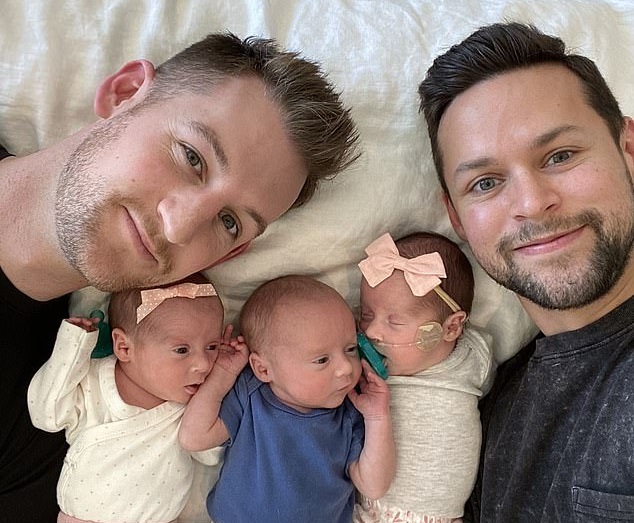 A Utah couple who once attempted to pray their gayness away has now welcomed triplets into their family.