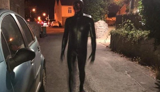 A woman even claimed that as she was walking down the dark village lane, she witnessed a man who was wearing attire entirely made of black rubber. The man allegedly “charged” at her on Thursday evening.