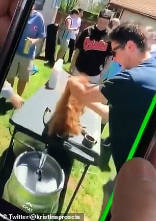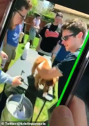 A neighbor named Violet Avery, who lives near the Alpha Epsilon Pi house, said: ‘That’s disgusting. A dog can’t say no.’