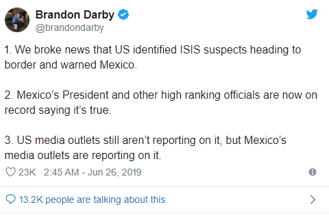 The whole story was ignored by all the public figures in the U.S. and after that Darby tweeted that the U.S. warned Mexico about the three suspects and the President himself accepted that it is true, but now the U.S. media is not reporting anything about it.