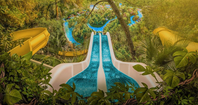It also has the longest lazy river in Latin America, called Lazy Rio. The river is 3,000 feet long and boasts dining huts and swim-up bars, which can be reached via inflatable tubes.