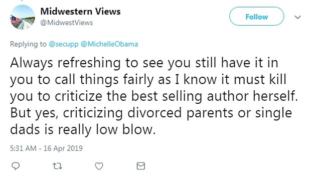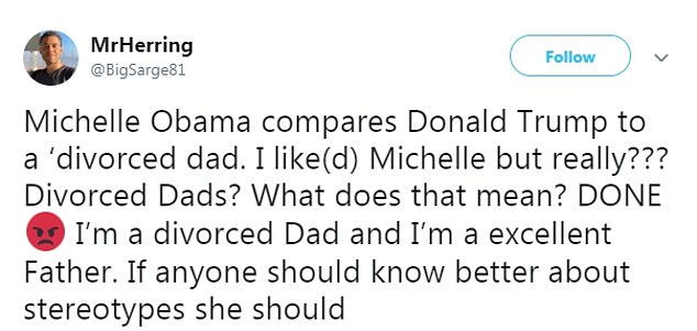 Following the comment, divorced dads quickly took offense to the former first lady’s words and lashed out at her on social media.