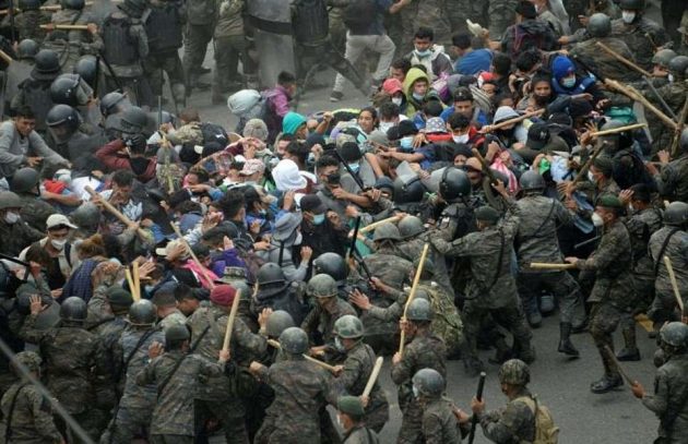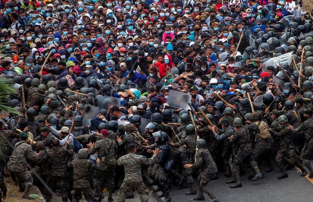 Videos show thousands of migrants clashing with Guatemalan security officials.