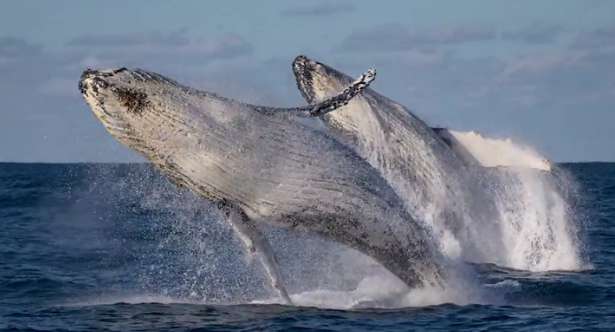 An enthusiastic wildlife photographer captured the stunning moment. It was seen that the two mammoths soared out of the water in a very different method, double breaching.