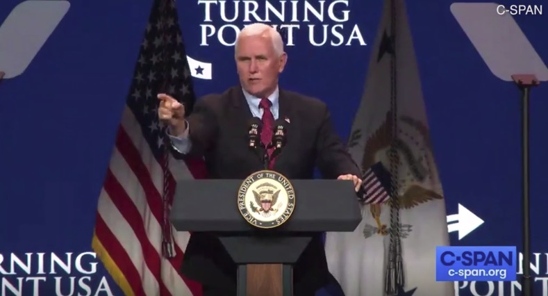 “Thank you for your support. Thank you for your hard work, your enthusiasm, and your prayers. But I came here today to say to the men and women of Turning Point USA – stay in the fight!” Pence said.