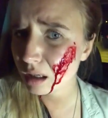 “This is what has just happened to us, I’m documenting the whole thing. I’m covered in blood,” Mia said in the footage.
