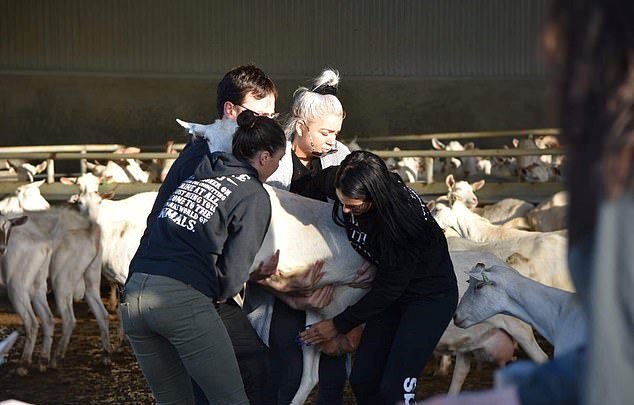 One of the activists was identified as Yasna Kelly, also known as Yaz Ustani, after she uploaded the video on social media and captioned it: “When you pass a sheep farm and see mums and babies locked in a tiny paddock, set them free.”