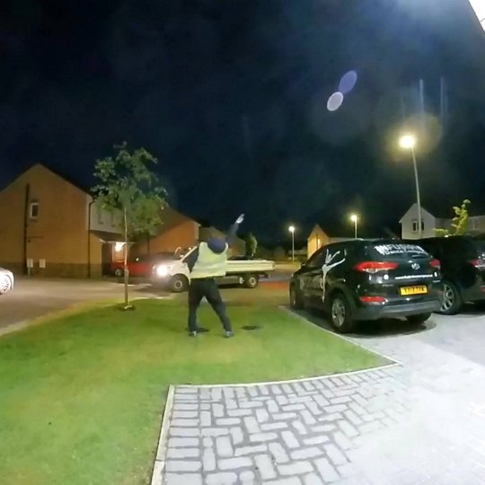 When they watched the CCTV footage, they saw him showing off his ballet moves on their lawn.