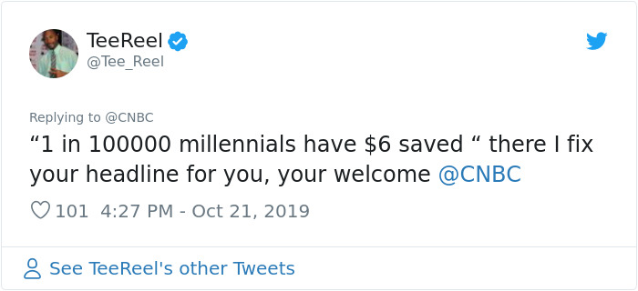 Millennials and other generations replied to CNBC’s post on Twitter about the survey’s results with a healthy dose of humor. Some made references to the amount of money they managed to save in games while others said the words ‘debt’ and ‘savings’ were probably mixed up.