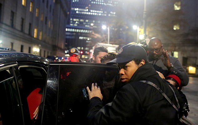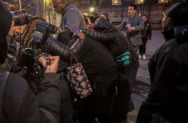 Their fellow officers were there for them to form a protective blockade so as to shield them from the photographers as they left the court premises.