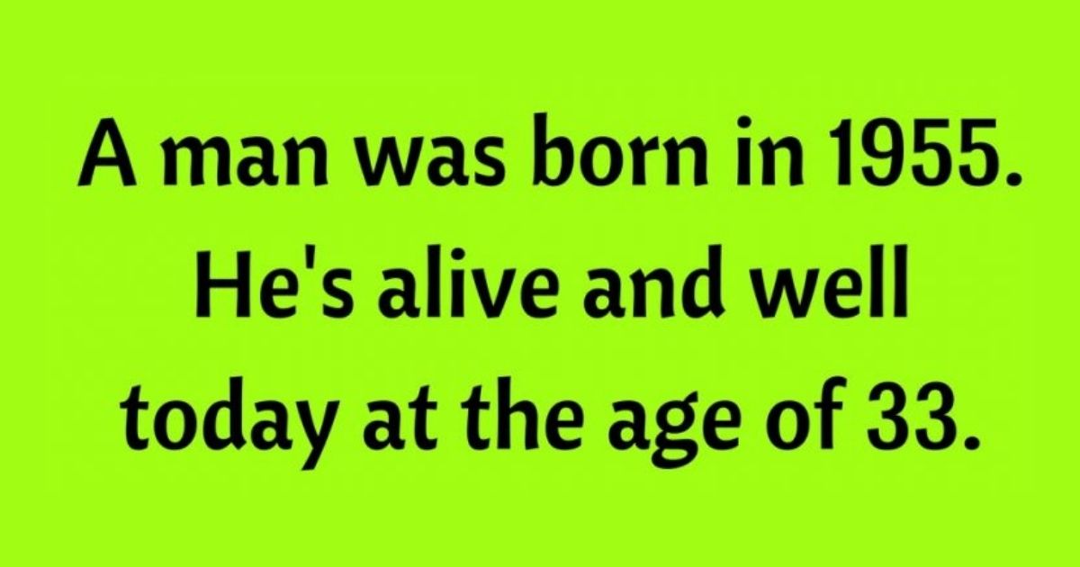 A man was born in 1955, he’s alive and well at the age of 33, how is this possible?