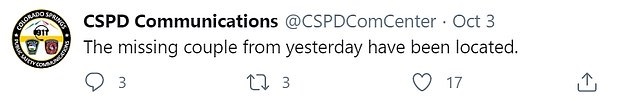 Since the couple failed to come back home by 8.30 in the evening, their family members alerted the authorities of their disappearance, prompting El Paso County Search and Rescue to launch a search mission.